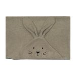 Soft organic cotton kids towel with bunny ears in slate green to keep baby warm after bath time. Functional and stylish. GOTS certified. Material: 100% organic cotton Size 75 x 120 cm. Care: Machine wash in 40°C Suitable from birth The color of the product may differ slightly from the one shown in the picture.