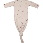 One size knotted baby gown will grow with your baby, suitable from birth till six months. It has dreamy soft fabric – organic cotton. Modern pattern, rounded neck, kimono sleeve and press-stud fastening at front for easy dress-up. Adorable knotted bottom keeps baby warm and cozy. IMPORTANT: This is a 2nd category item with minor defects – small, insignificant issues that don’t affect the function or form of the item. In most cases, the customer wouldn’t even notice a minor defect on a product. Material: 100% cotton (organic, certified) Press-stud: nickel free Machine wash in 40°C The color of the product may differ slightly from the one shown in the picture.
