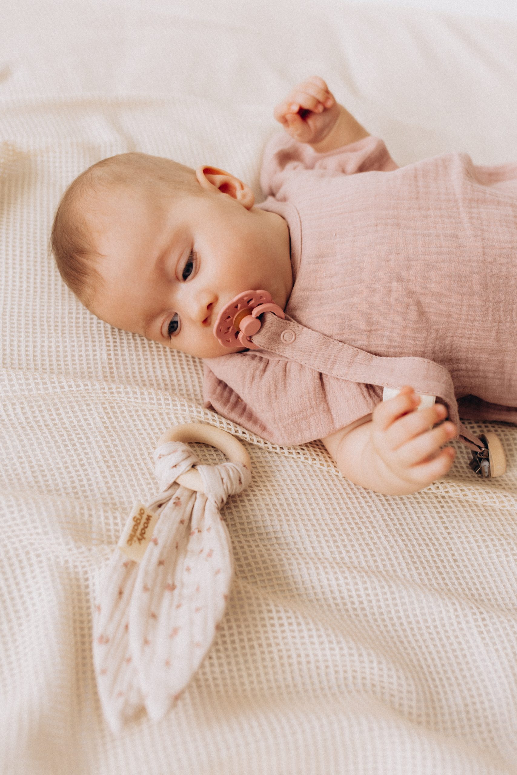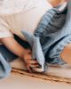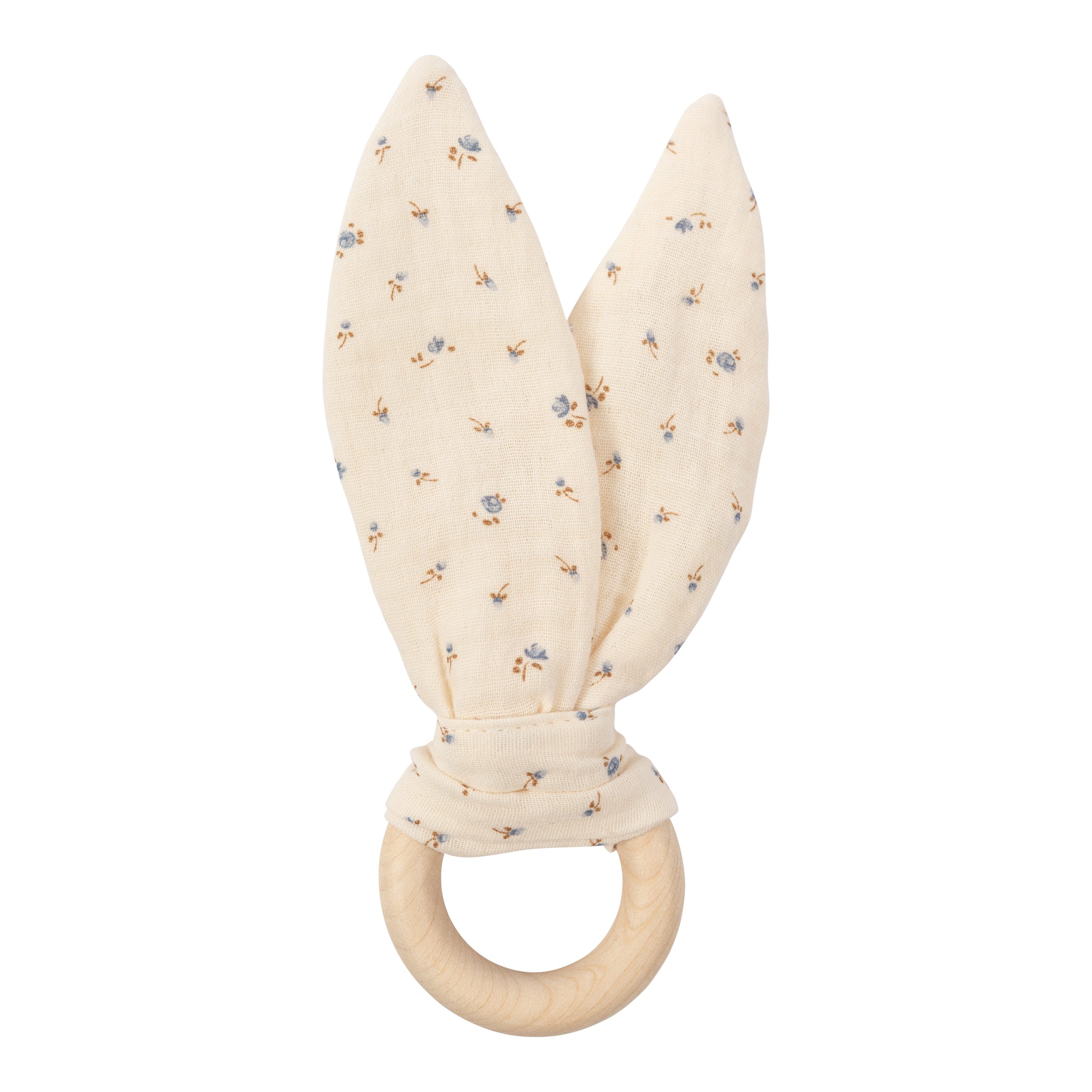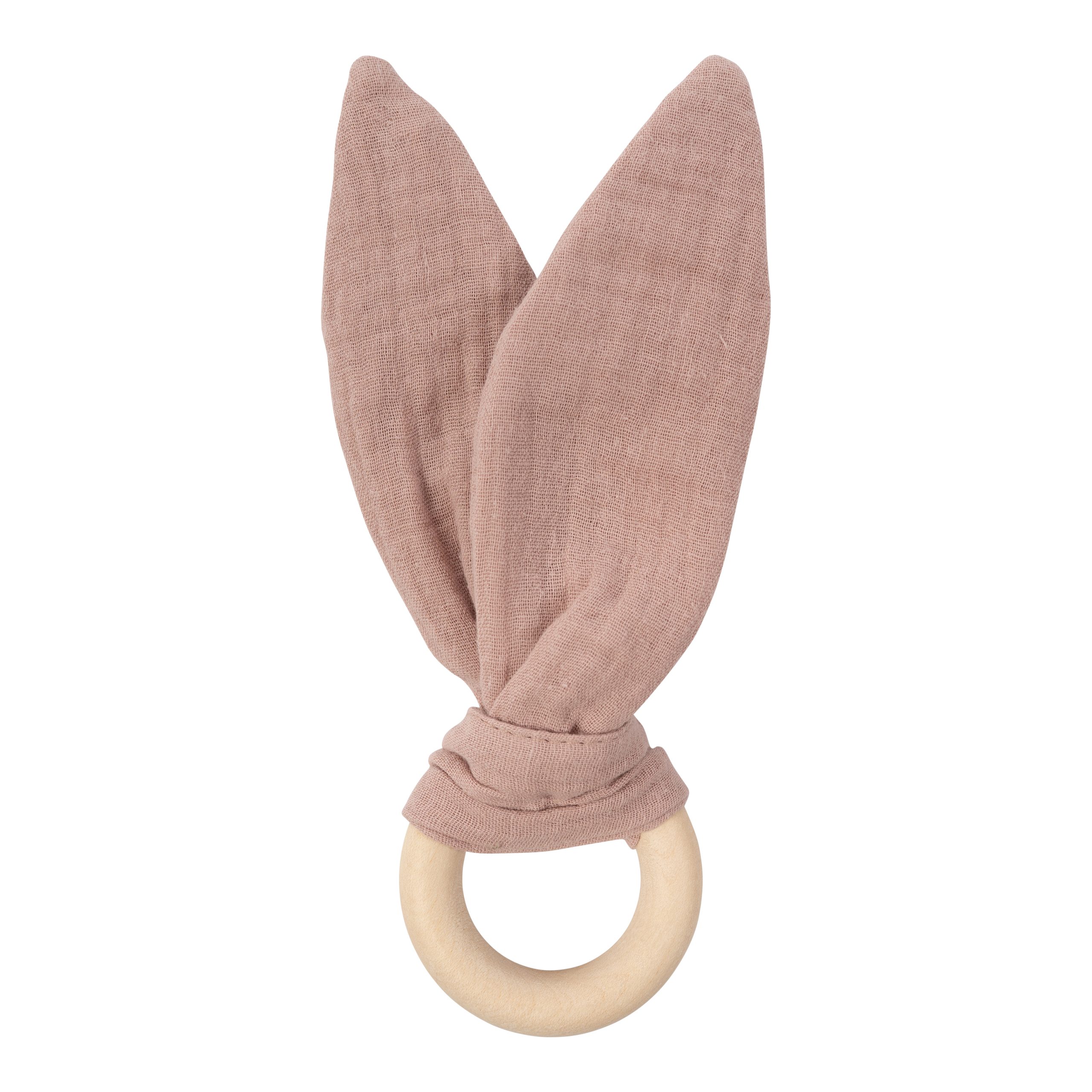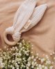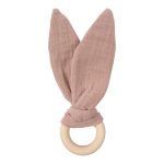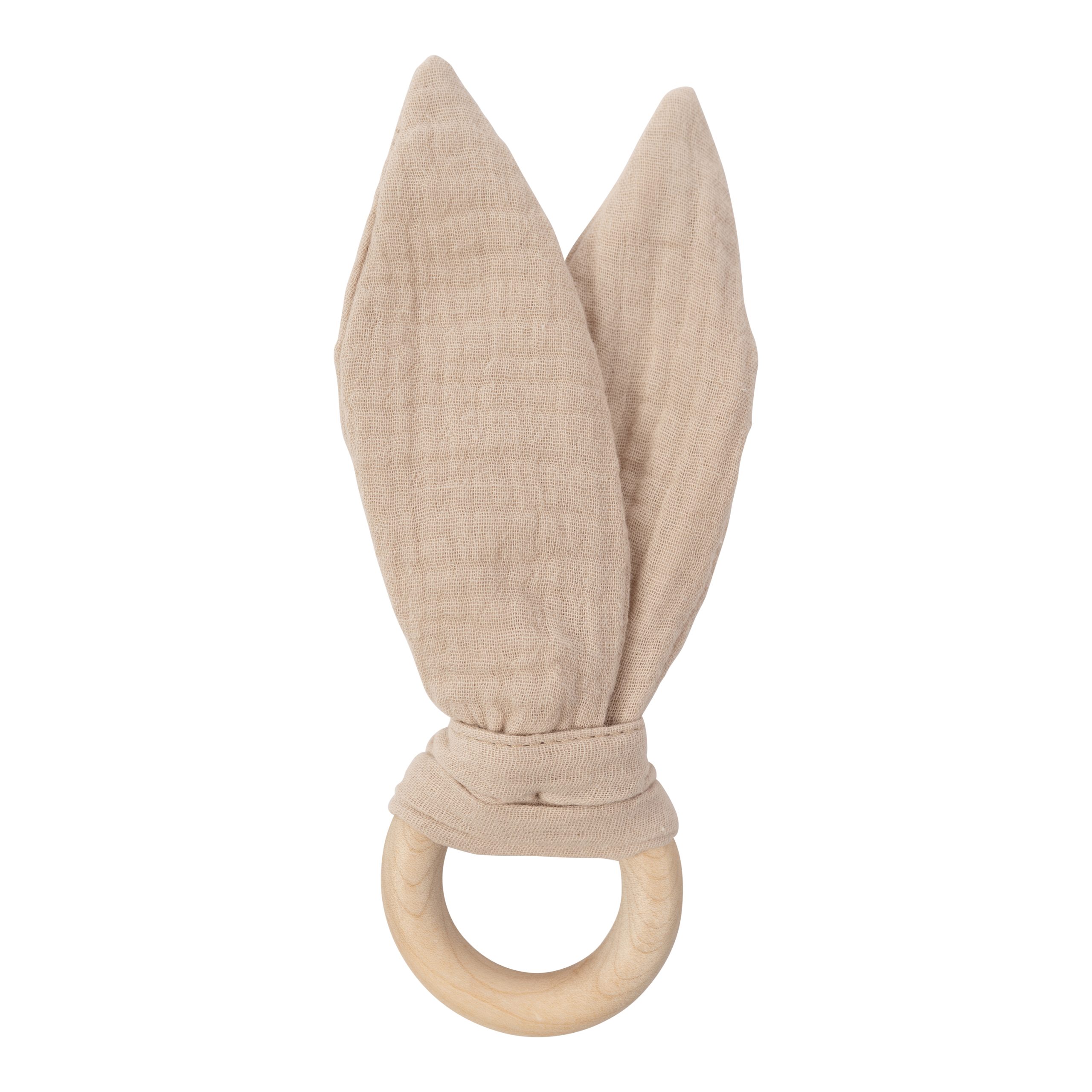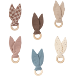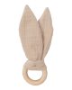 Simple, soothing, and safe, this teether combines soft muslin bunny ears with a smooth, natural wooden ring to support your baby’s teething journey. The crinkly muslin fabric encourages sensory exploration, while the wooden ring provides a firm yet gentle surface for sore gums. Lightweight and easy to grip, it’s perfectly sized for little hands and makes a lovely natural alternative to plastic teethers. A simple, natural teething toy designed with comfort and curiosity in mind. Material: 100% organic cotton [GOTS], crinkle material: rustling foil wooden ring: 6 cm. Made with love in Latvia (EU). Please note: The color of the product may differ slightly from the one shown in the picture.