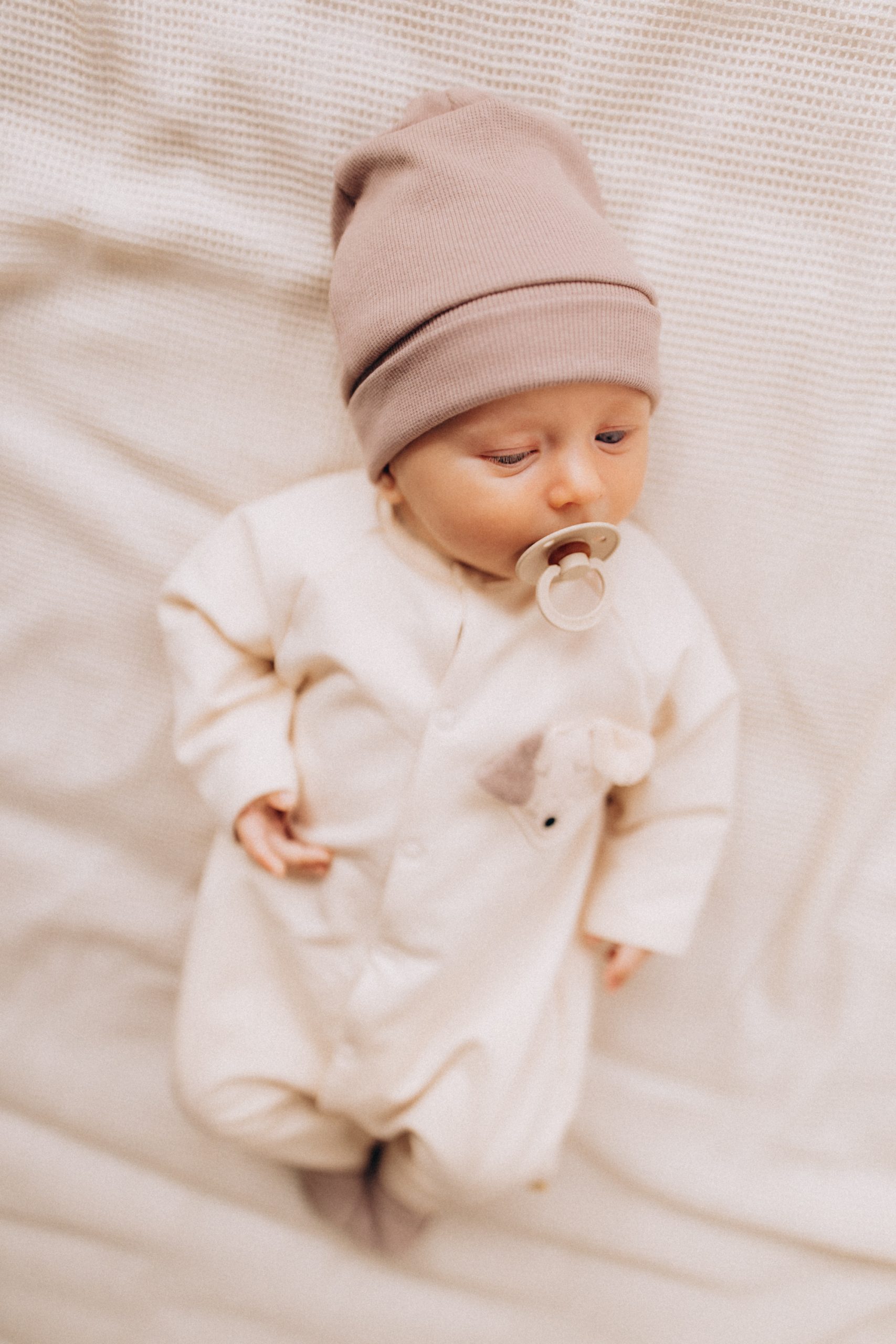 Keep your little one snug and stylish with this adorable baby beanie hat, crafted from soft and stretchy double rib fabric. The breathable material ensures comfort throughout the day, while the ribbed texture provides both warmth and flexibility. Perfect for cooler days, this beanie offers a cozy fit that stays in place, making it ideal for outdoor adventures or cozy indoor moments. Its simple design and gentle fabric make it a must-have accessory for any baby’s wardrobe. Material: 98% organic cotton, 2% elastane [GOTS]. Made with love in Latvia (EU). Please note: The color of the product may differ slightly from the one shown in the picture.